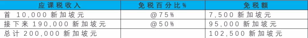 新成立的新加坡(稅收)居民企業(yè)的應(yīng)稅收入中,前100,000新加坡元的部分可獲得 75% 免稅,100,001-200,000 新加坡元的部分可獲得50%的稅收減免,該計劃的其他內(nèi)容保持不變。